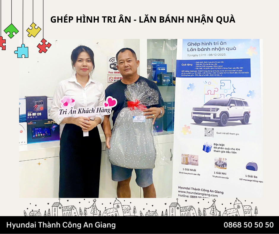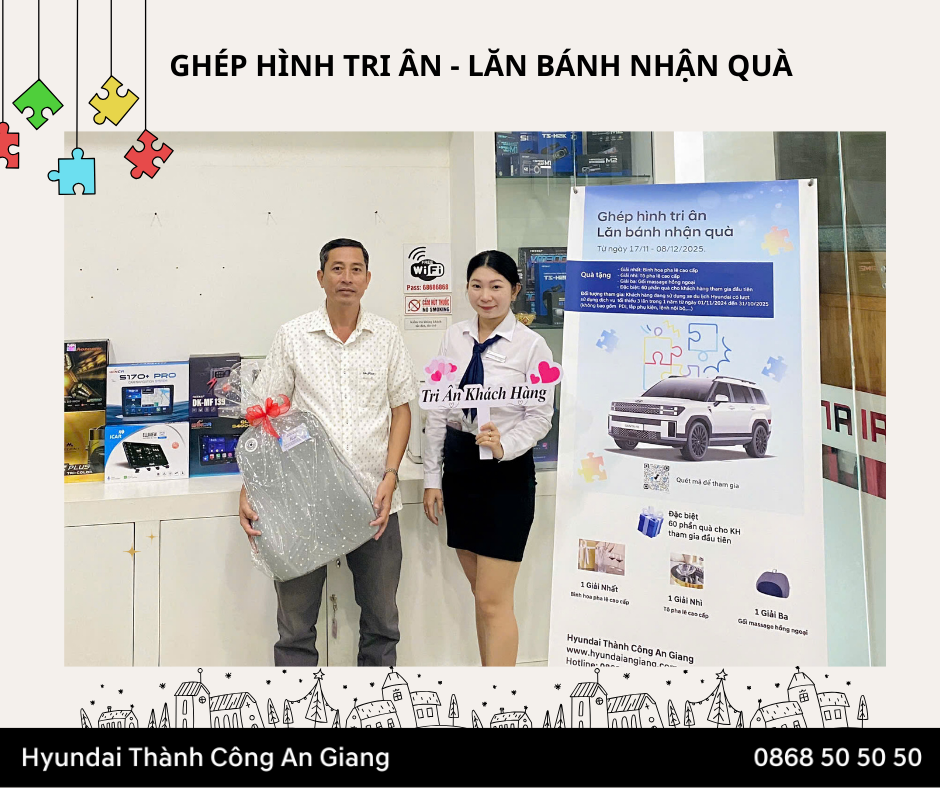 Nhằm tăng sự gắn kết và tri ân Quý khách hàng đã tin tưởng, đồng hành cùng đại lý trong suốt thời gian qua. Hyundai An Giang tổ chức mini game "Ghép hình tri ân - Lăn bánh nhận quà"